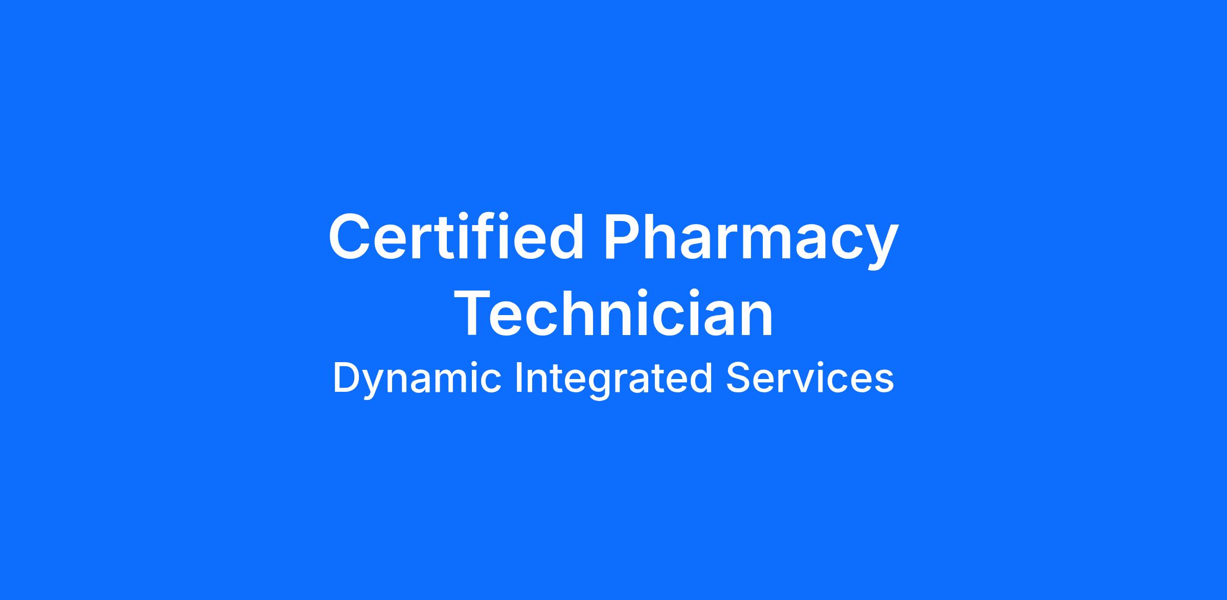Dynamic Integrated Services (DIS) is seeking a Certified Pharmacy Technician (CPhT) to join our growing organization. This role will partner closely with pharmacy leadership and staff to support operations on a federal healthcare contract in a fast-paced, production-based pharmacy environment.