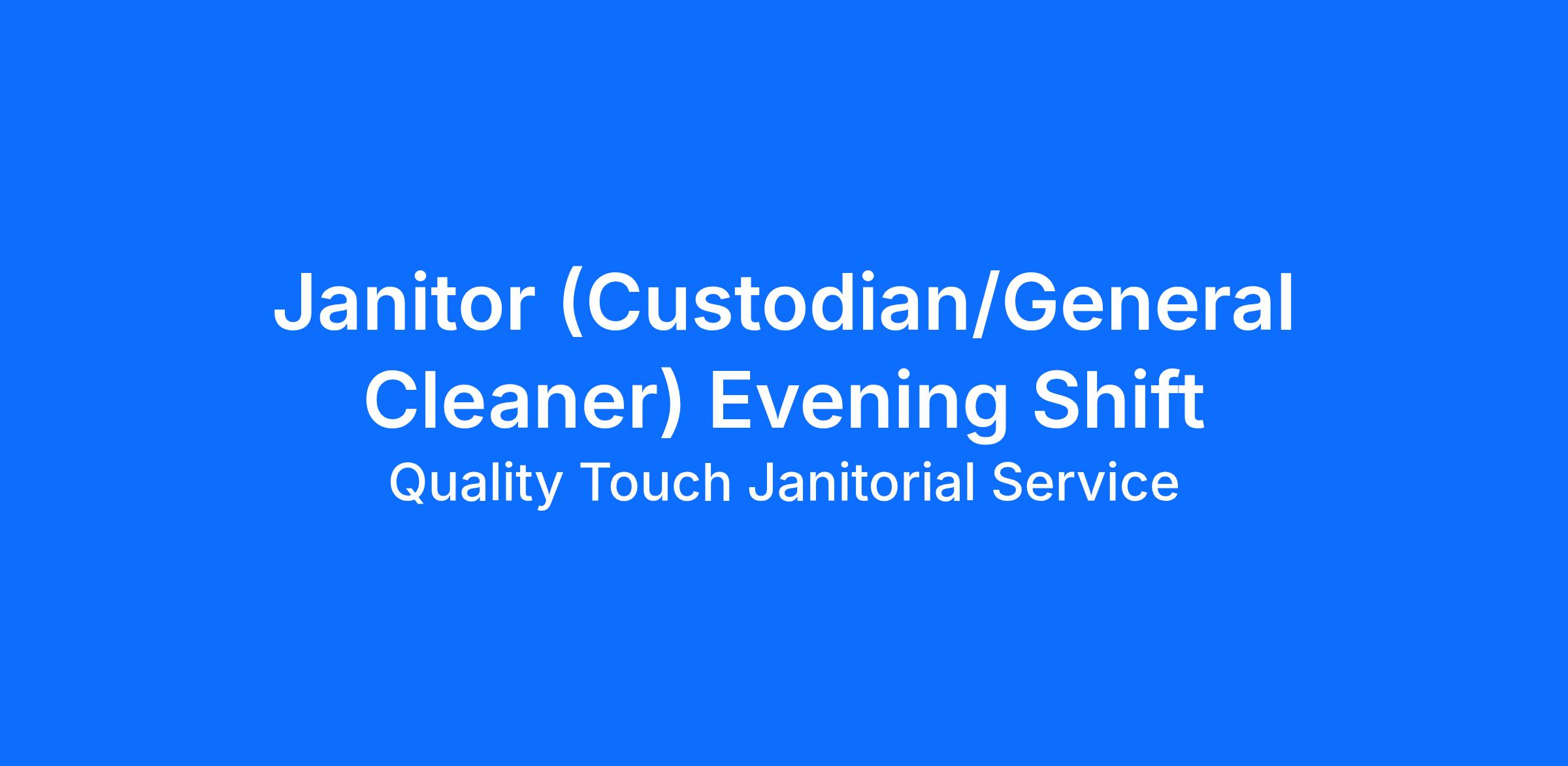 Quality Touch Janitorial Service, Inc. is looking for a Janitor to join our team! If you're looking for a position that offers competitive wages, especially for that supplemental income, this is the perfect position for you! We have flexibility and great teams to feel like you're part of a family environment!