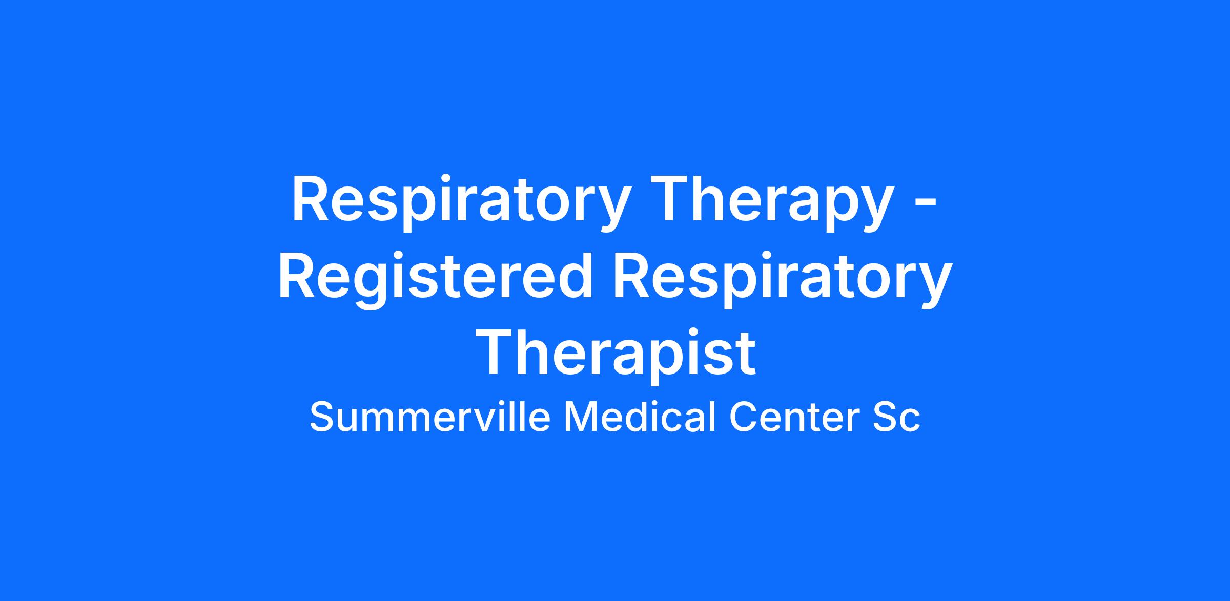 Our Client is currently seeking a Respiratory Therapy for a position in Summerville, SC. 3x12 Days shift. You must have current State Licensure and at least 1 year of recent Registered Respiratory Therapist experience.